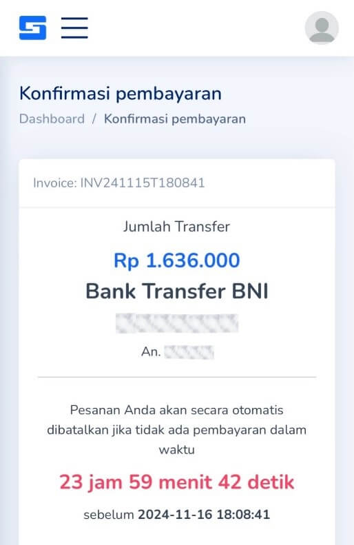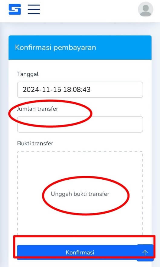 Kemudian isi halaman konfirmasi pembayaran anda dengan nominal yang telah anda transfer, serta unggah bukti pembayaran anda. Kemudian klik Konfirmasi.