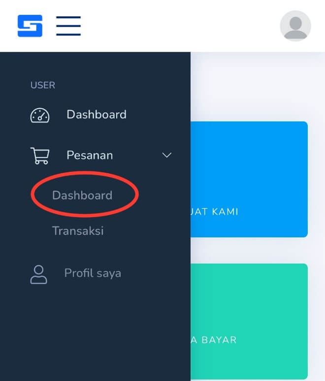Setelah berhasil login dan masuk ke akun anda, klik ikon garis tiga yang ada di pojok kanan atas.